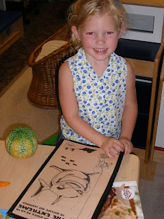 Each child then draws a picture of "The Name Game Person of the Day" and writes the name somewhere on the paper. Mrs. Misenheimer, our Kindergarten Assistant, then binds the pages so that child will have a book to take home and keep. The children LOVE taking home a collection of drawings of none other than themselves!